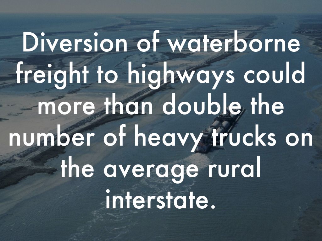 Diversion of waterborne freight to highways could more than double the number of heavy trucks on the average rural interstate.