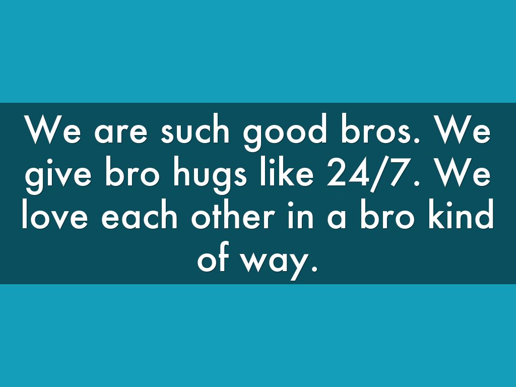 We are such good bros. We give bro hugs like 24/7. We love each other in a bro kind of way.