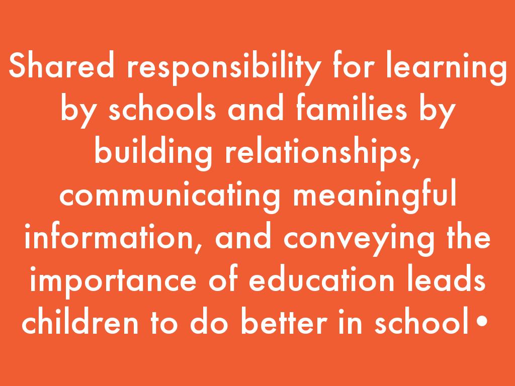 Shared responsibility for learning by schools and families by building relationships, communicating meaningful information, and conveying the importance of education leads children to do better in school•