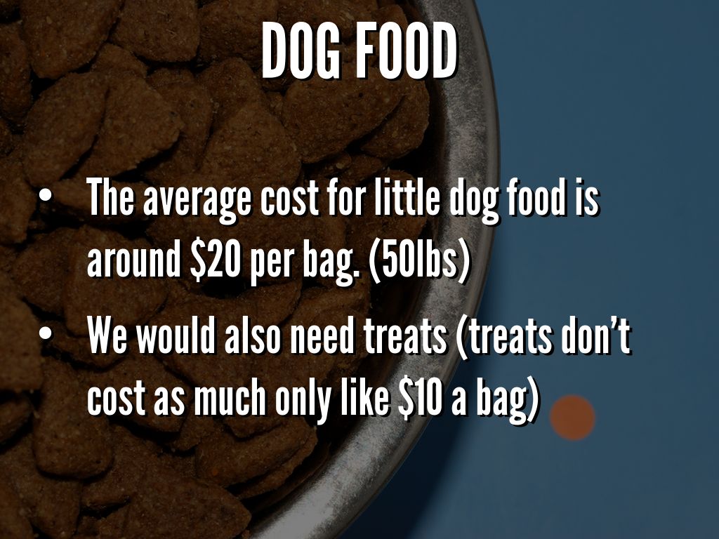 The annual average yearly cost for a small dog is $580 including food,medical,toys/treats,license,health insurance!