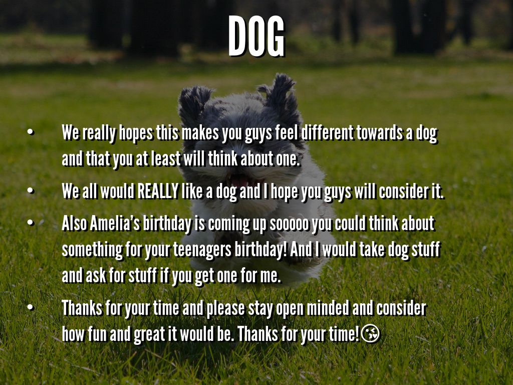 We really hopes this makes you guys feel different towards a dog and that you at least will think about one.