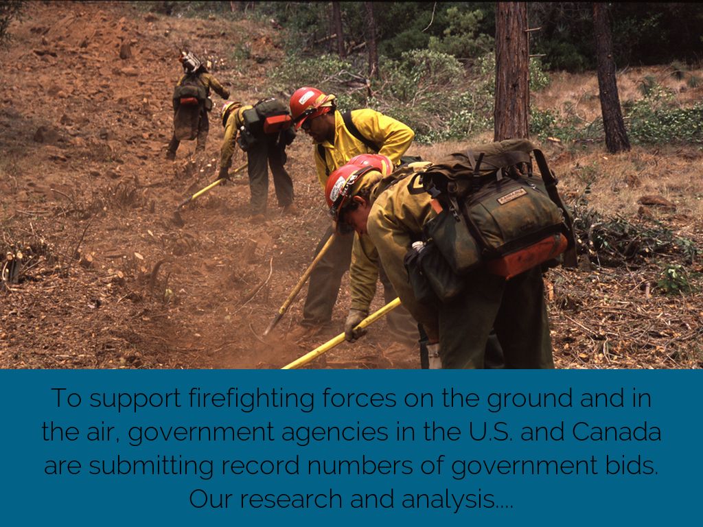 Due to drought and other factors, 2015 has been a particularly grim start to wildfire season. Our research on wildfire-related systems and solutions demonstrates that a number of government agencies, throughout the United States and Canada, have purchased and are pursuing a notable number of relevant systems and solutions. In this study of government bid requests and government RFPs, we focused on the past twelve months of activity.