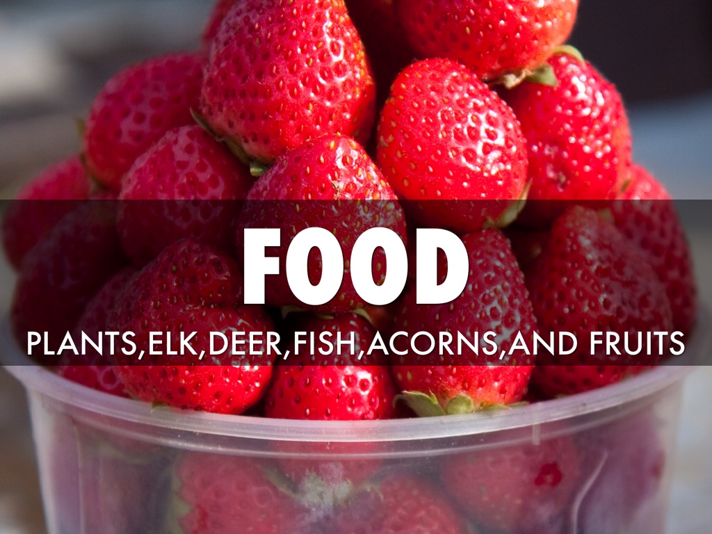 PLANTS,ELK,DEER,FISH,ACORNS,AND FRUITS
