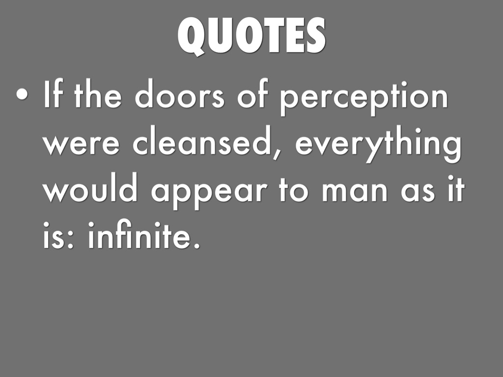 • If the doors of perception were cleansed, everything would appear to man as it is: infinite.
