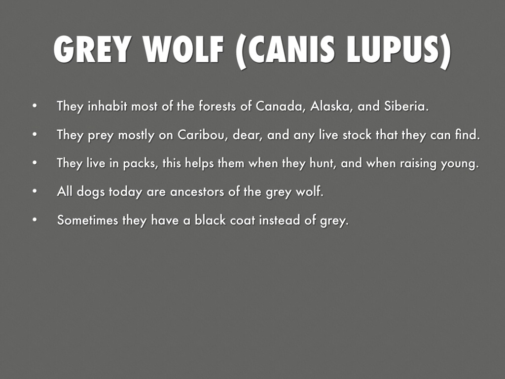 • They prey mostly on Caribou, dear, and any live stock that they can find.