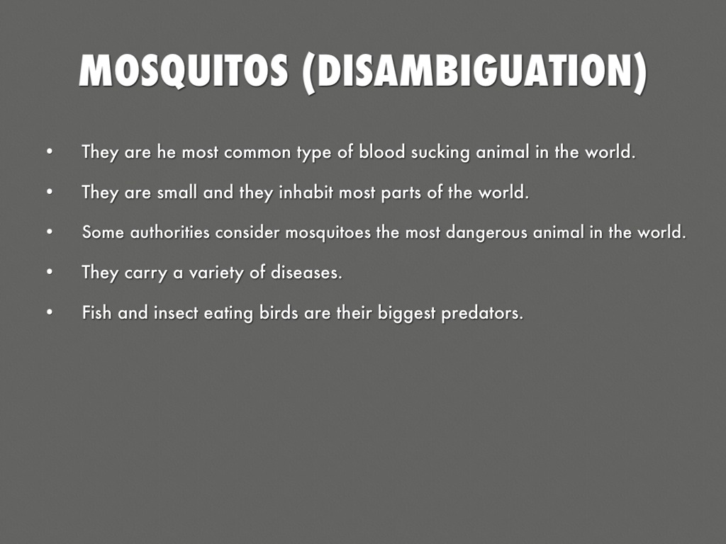 • Some authorities consider mosquitoes the most dangerous animal in the world.