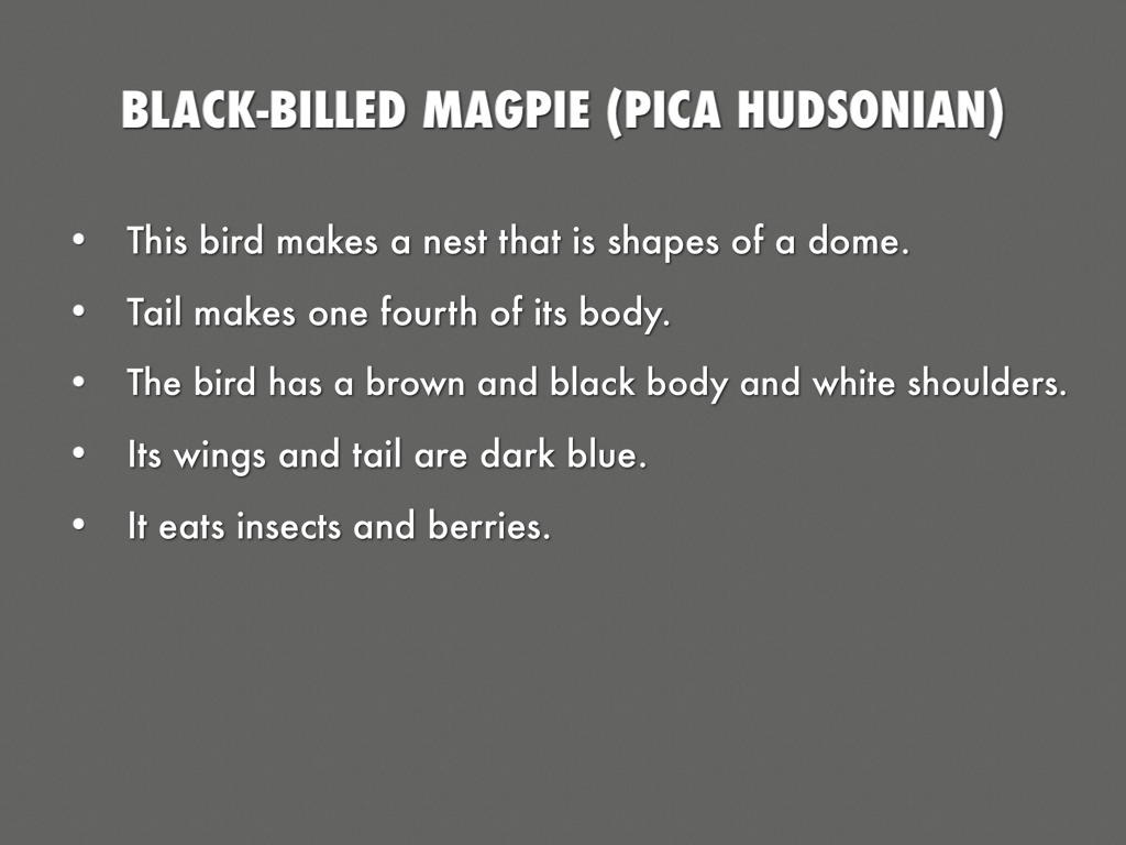 BLACK-BILLED MAGPIE (PICA HUDSONIAN)