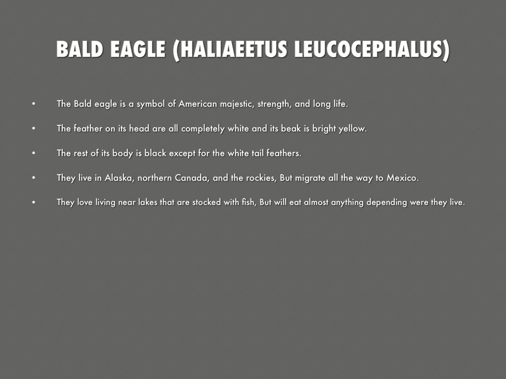 • The Bald eagle is a symbol of American majestic, strength, and long life.