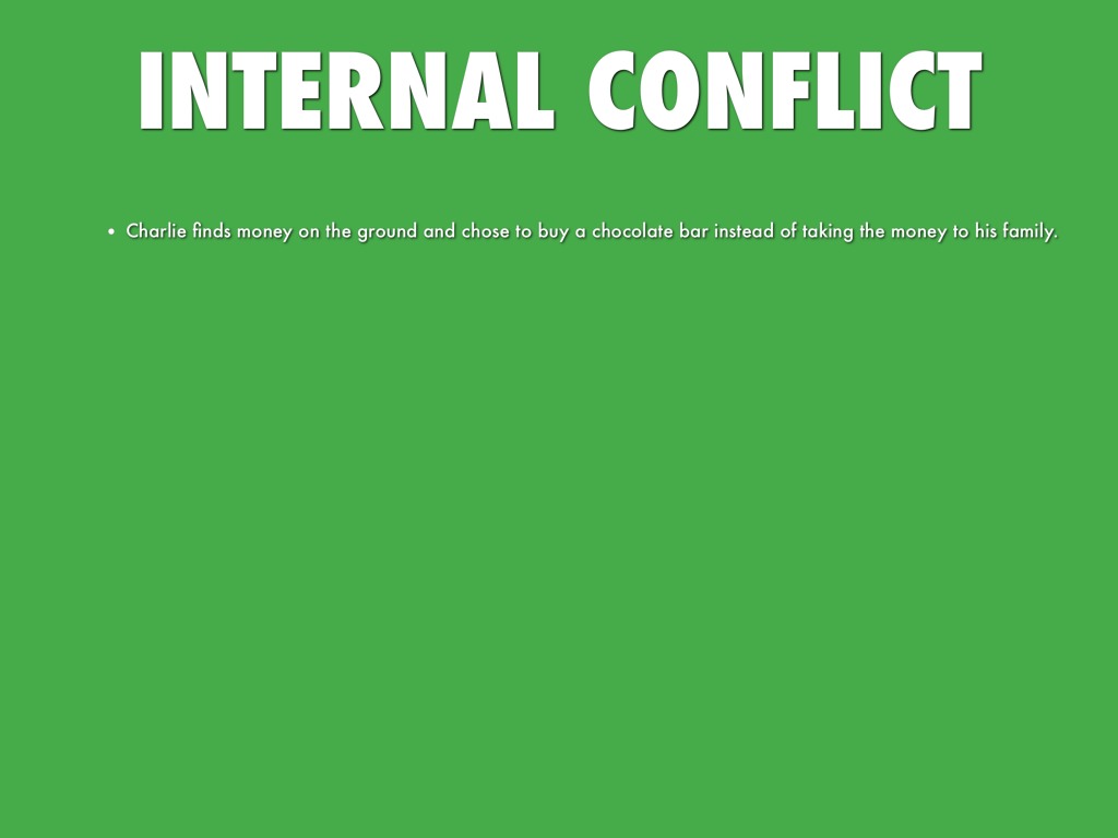 • Charlie finds money on the ground and chose to buy a chocolate bar instead of taking the money to his family.