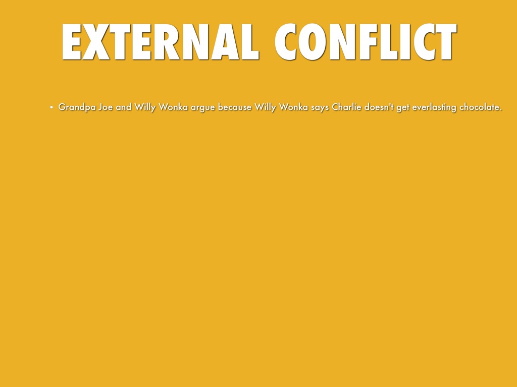 • Grandpa Joe and Willy Wonka argue because Willy Wonka says Charlie doesn't get everlasting chocolate.
