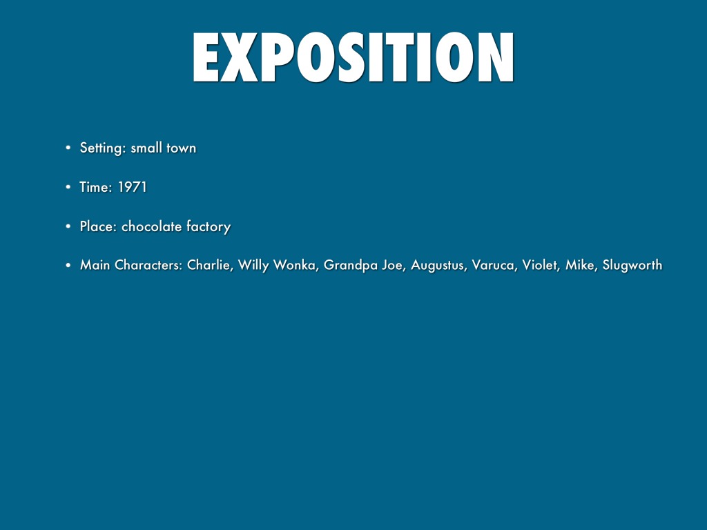 • Main Characters: Charlie, Willy Wonka, Grandpa Joe, Augustus, Varuca, Violet, Mike, Slugworth