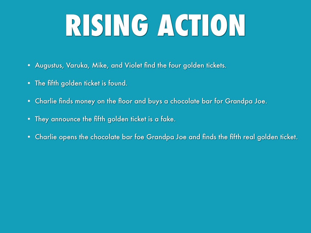 • Augustus, Varuka, Mike, and Violet find the four golden tickets.
