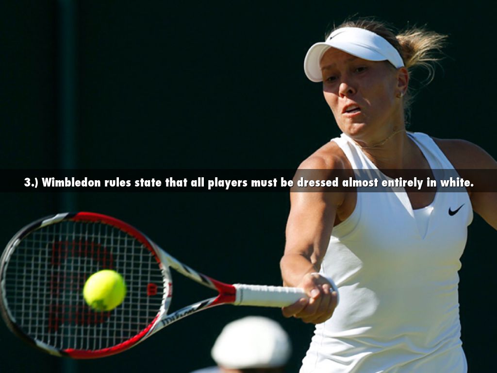 3.) Wimbledon rules state that all players must be dressed almost entirely in white.