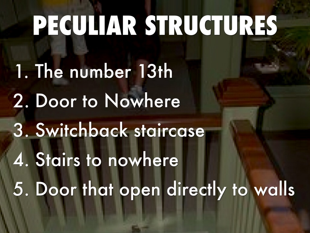 One of the most famous perculiar artifacts would be the door to nowhere.