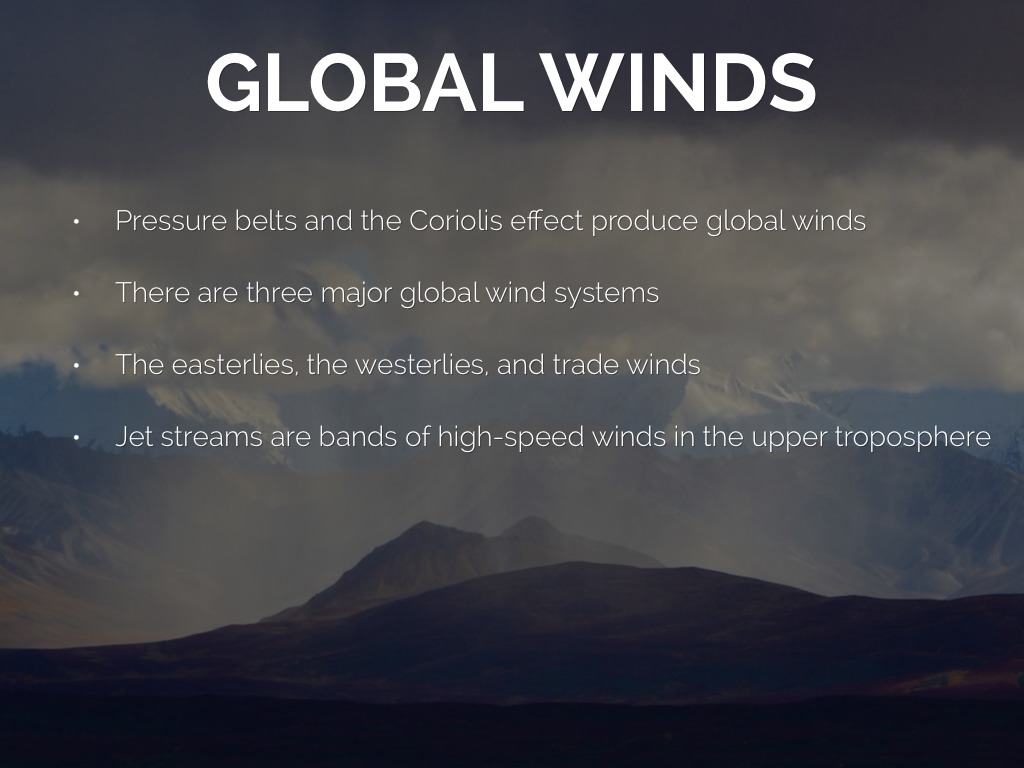 • The easterlies, the westerlies, and trade winds