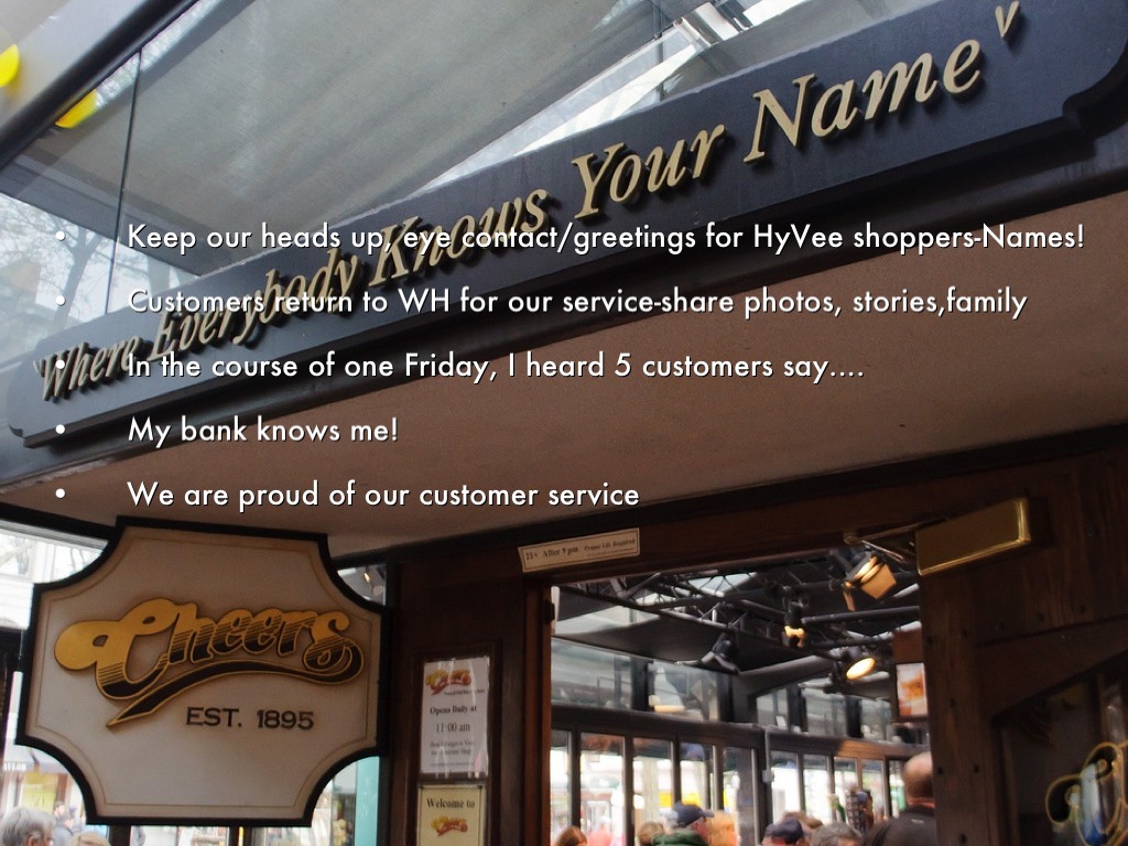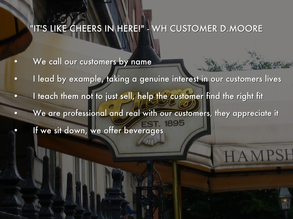 "IT'S LIKE CHEERS IN HERE!" - WH CUSTOMER D.MOORE