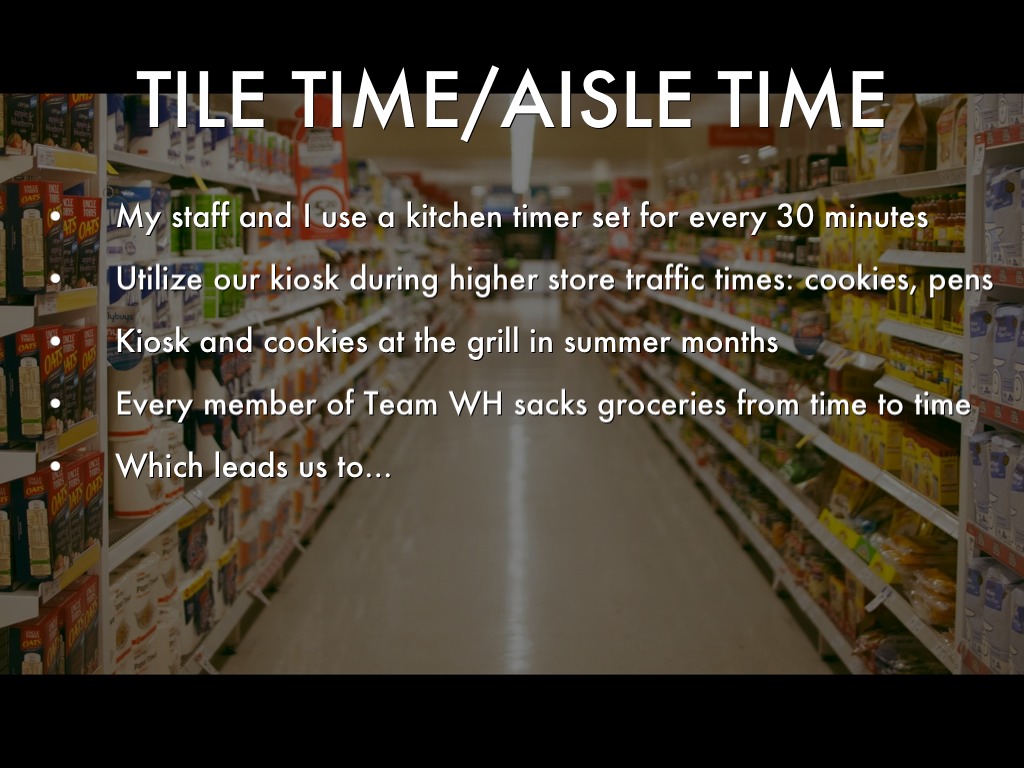 TILE TIME/AISLE TIME/IN-STORE MARKETING