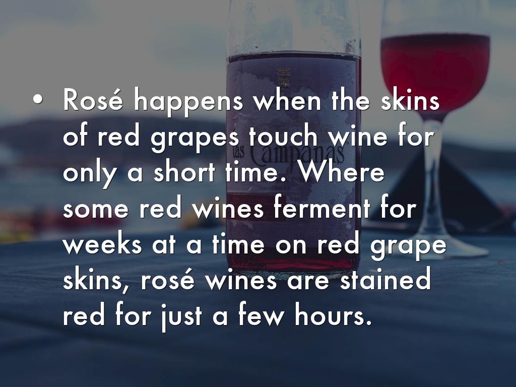 Rosé happens when the skins of red grapes touch wine for only a short time. Where some red wines ferment for weeks at a time on red grape skins, rosé wines are stained red for just a few hours.