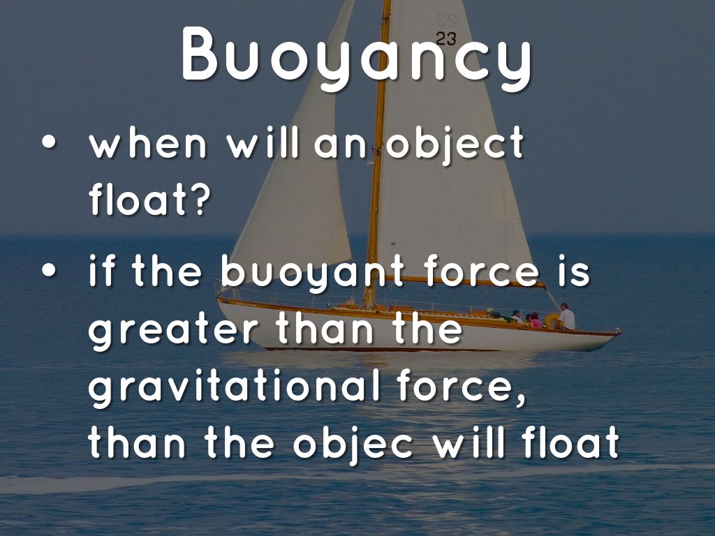 if the buoyant force is greater than the gravitational force, than the objec will float