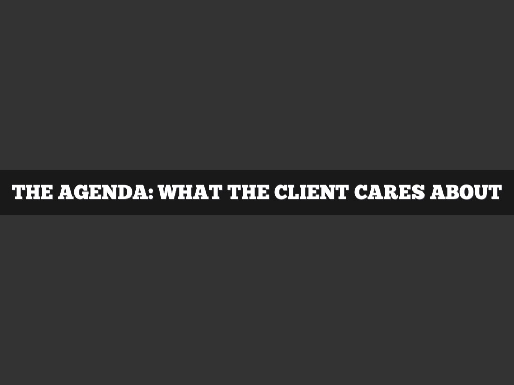 THE AGENDA: WHAT THE CLIENT CARES ABOUT