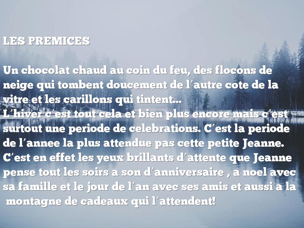 C’est en effet les yeux brillants d’attente que Jeanne pense tout les soirs a son d’anniversaire , a noel avec sa famille et le jour de l’an avec ses amis et aussi a la montagne de cadeaux qui l’attendent!