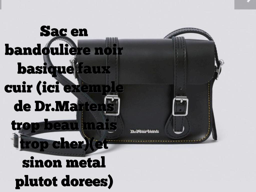 Sac en bandouliere noir basique faux cuir (ici exemple de Dr.Martens trop beau mais trop cher)(et sinon metal plutot dorees)