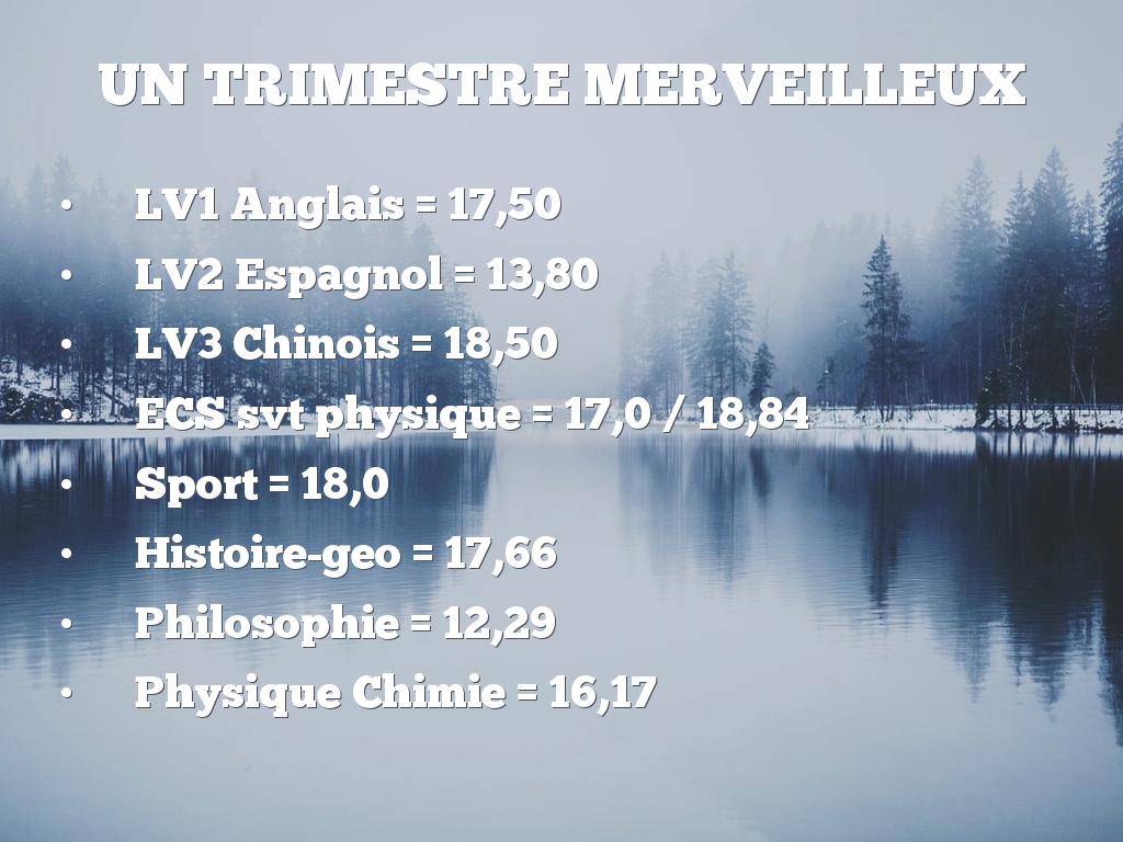 Jeanne a travailler durement ce trimestre et ces resultats sont plus que satisfaisants et elle est tres meritante.