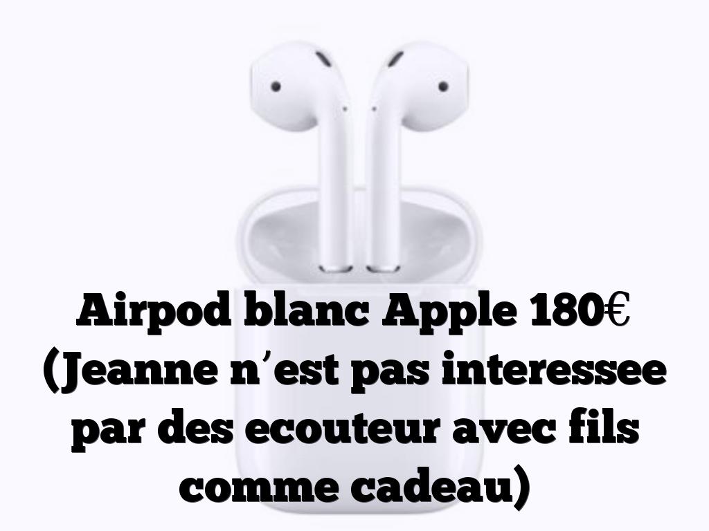 Airpod blanc Apple 180€ (Jeanne n’est pas interessee par des ecouteur avec fils comme cadeau)