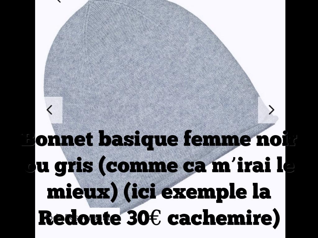 Bonnet basique femme noir ou gris (comme ca m’irai le mieux) (ici exemple la Redoute 30€ cachemire)