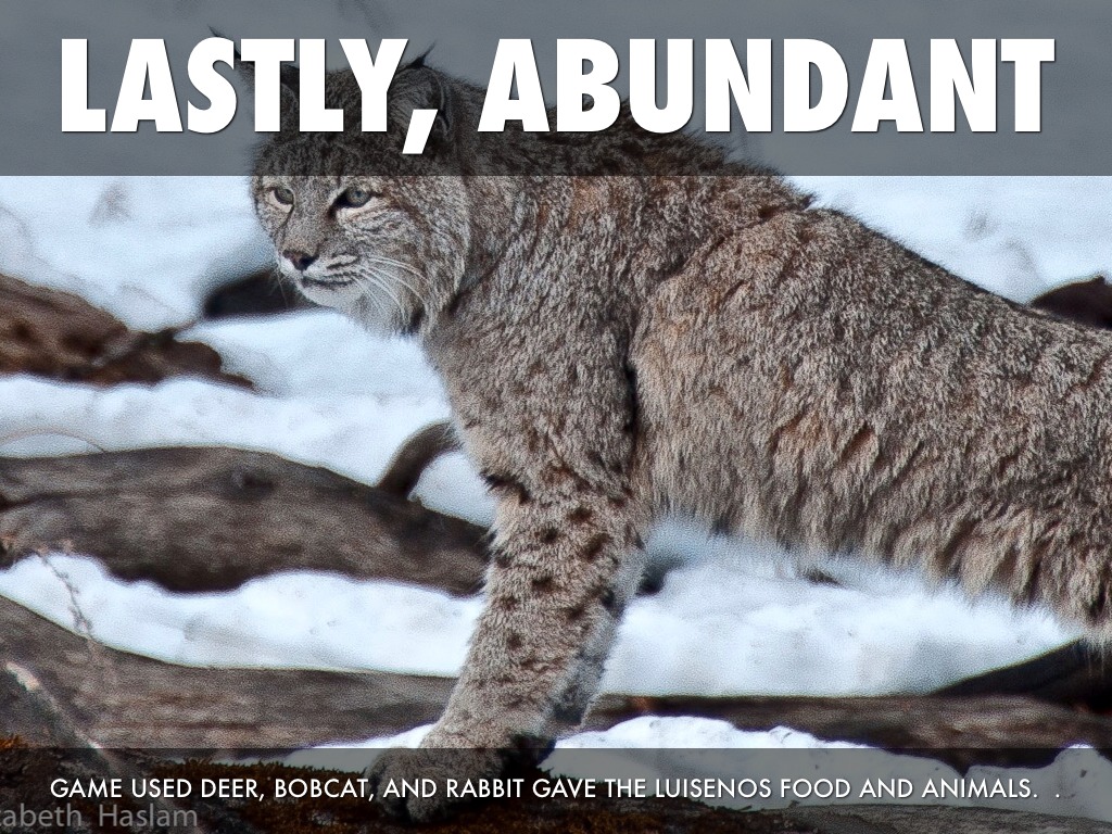 GAME USED DEER, BOBCAT, AND RABBIT GAVE THE LUISENOS FOOD AND ANIMALS. .