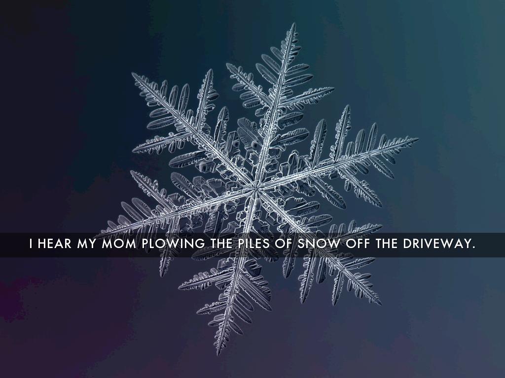 I HEAR MY MOM PLOWING THE PILES OF SNOW OFF THE DRIVEWAY.