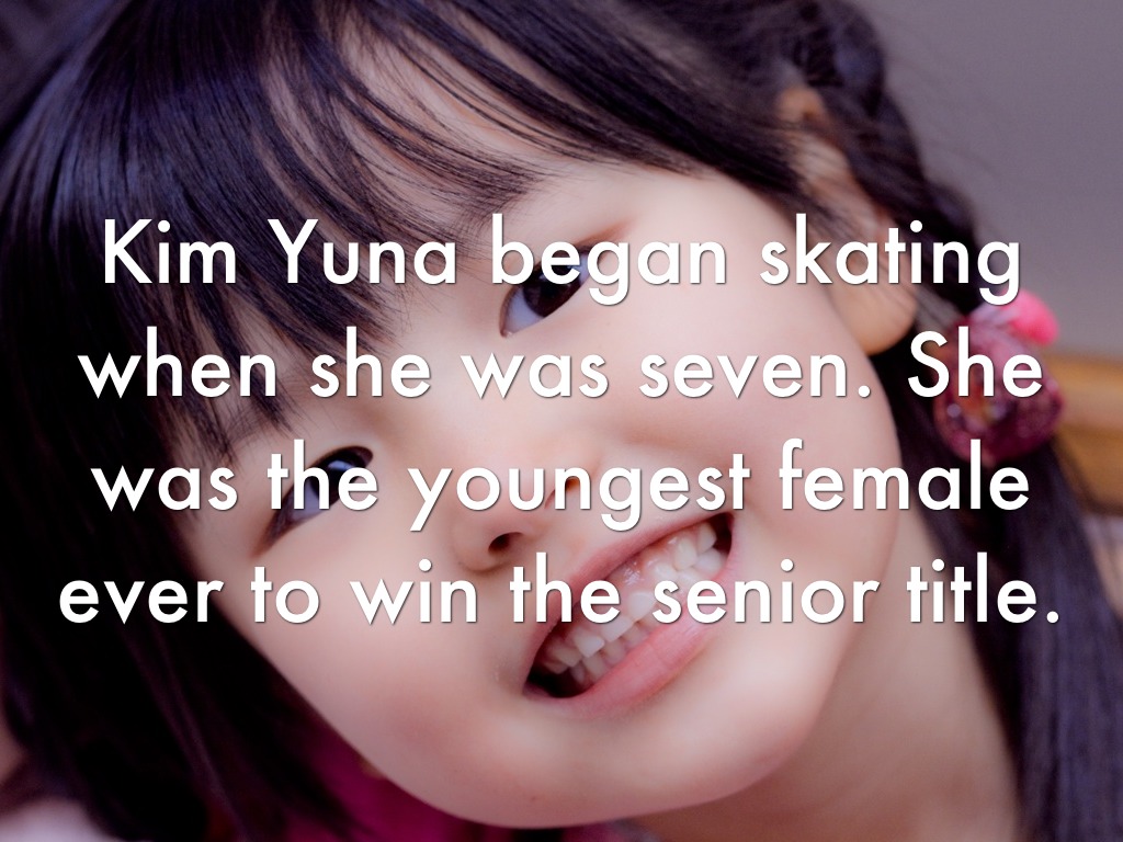 Kim Yuna began skating when she was seven. She was the youngest female ever to win the senior title.