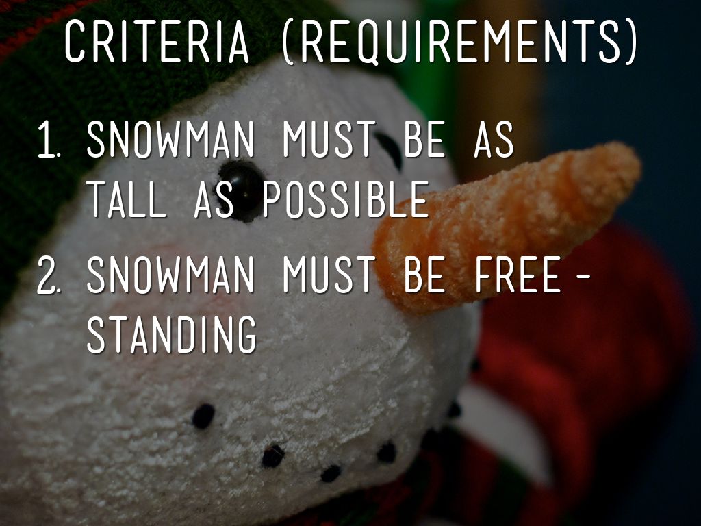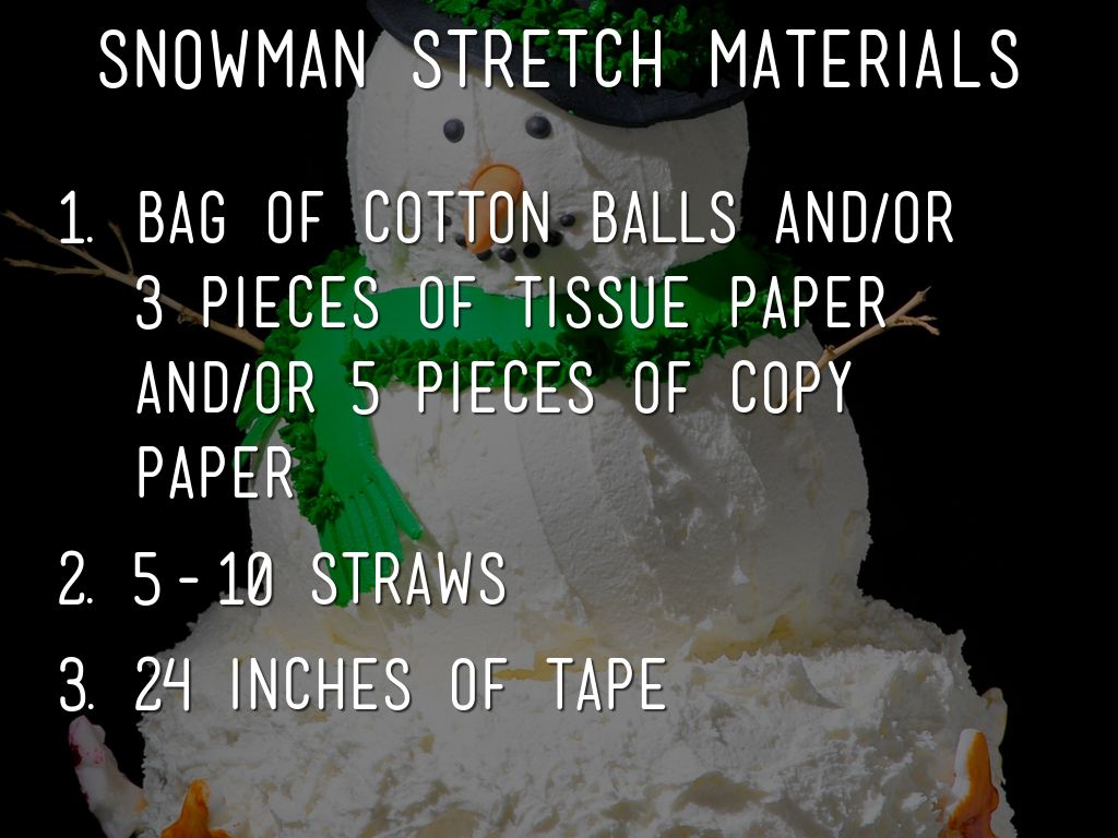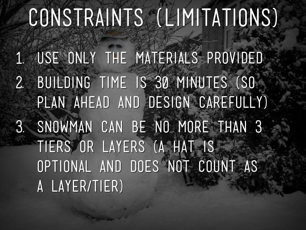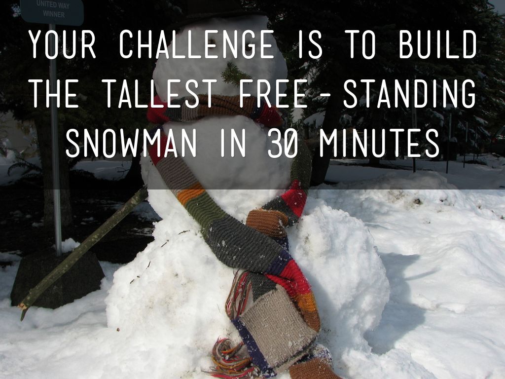 Your Challenge is to build the tallest Free-standing Snowman in 30 minutes