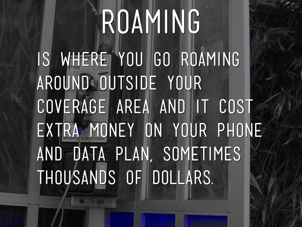 • is where you go roaming around outside your coverage area and it cost extra money on your phone and data plan, sometimes thousands of dollars.