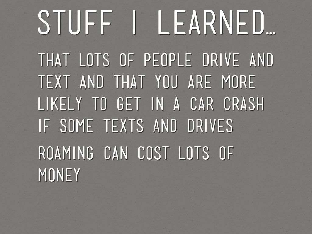 • that lots of people drive and text and that you are more likely to get in a car crash if some texts and drives
