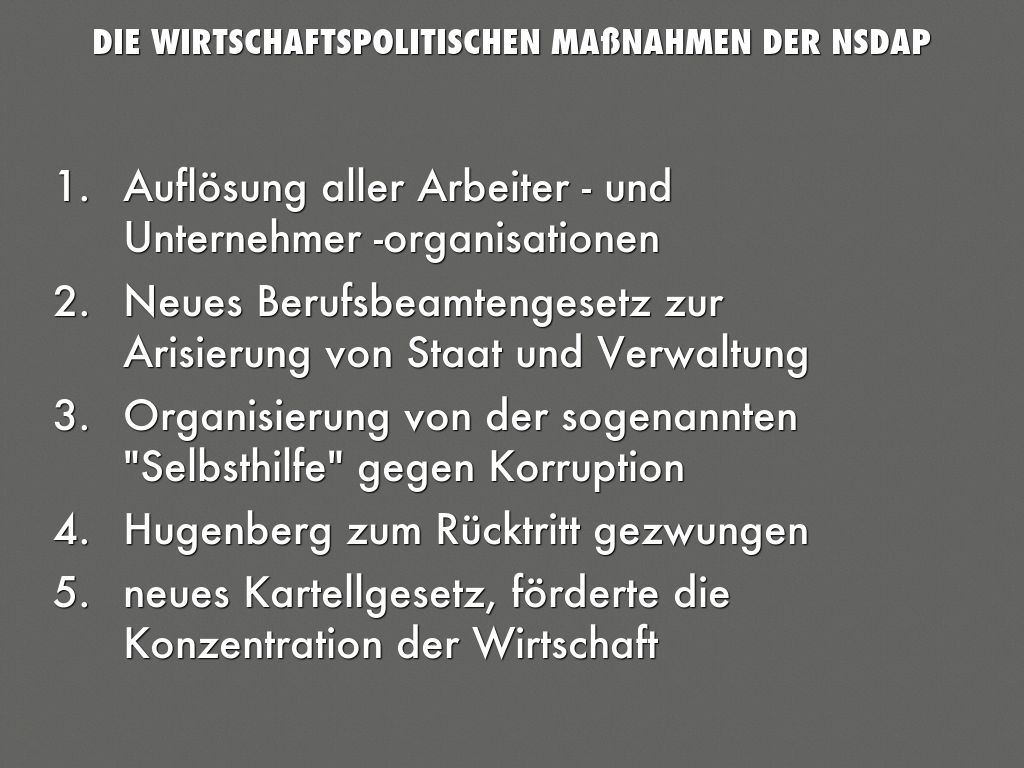 • Die wirtschaftspolitische Maßnahmen der NSDAP