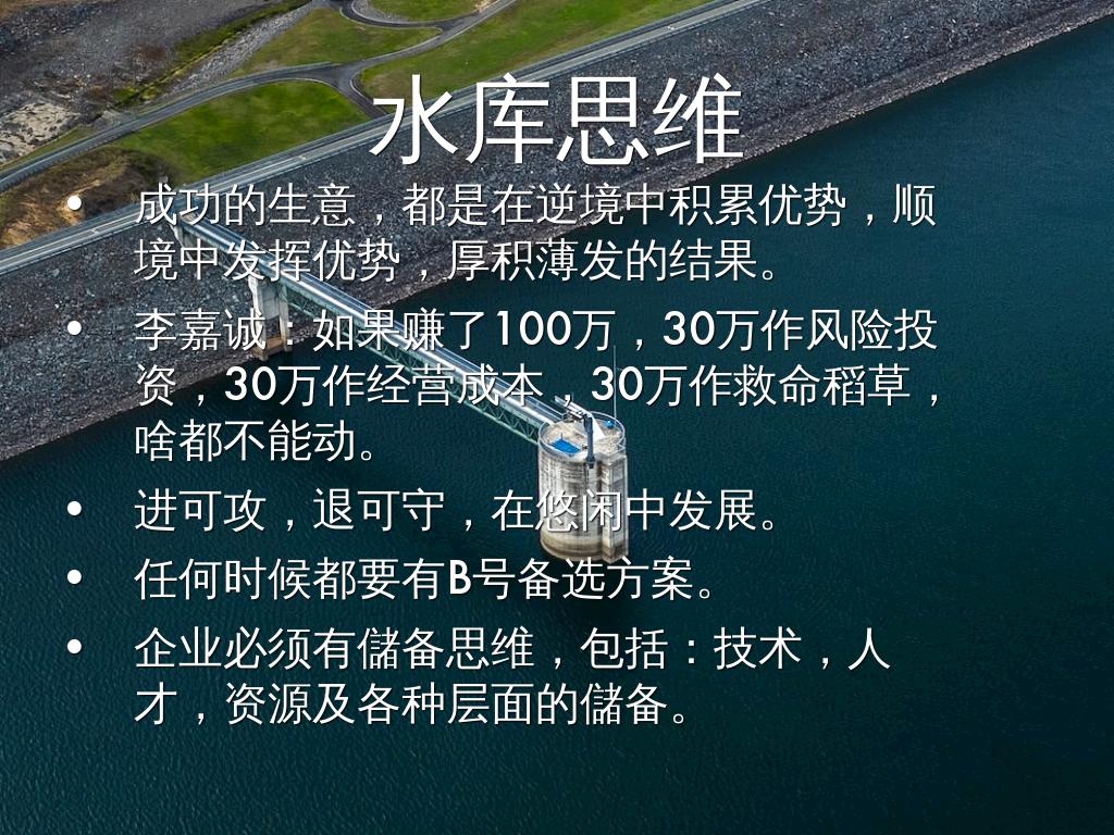 企业必须有儲备思维,包括:技术,人才,资源及各种层面的儲备。