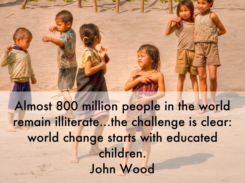 Almost 800 million people in the world remain illiterate...the challenge is clear: world change starts with educated children.