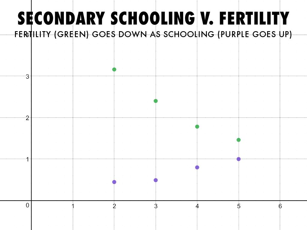 FERTILITY (GREEN) GOES DOWN AS SCHOOLING (PURPLE GOES UP)