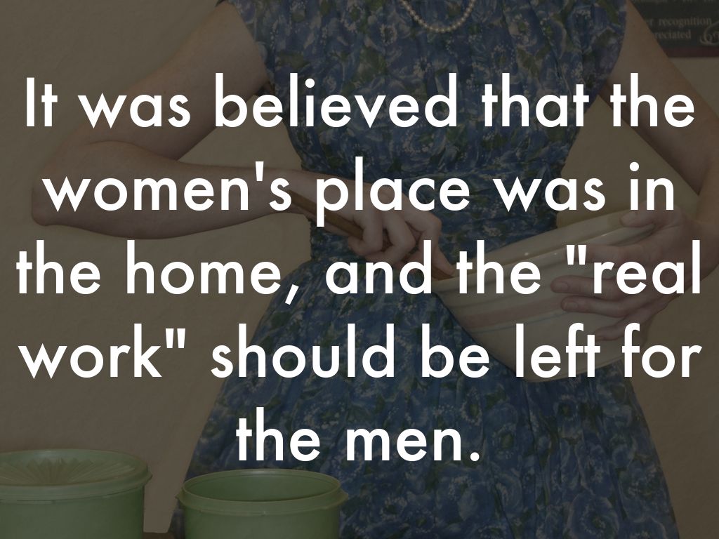 It was believed that the women's place was in the home, and the "real work" should be left for the men.