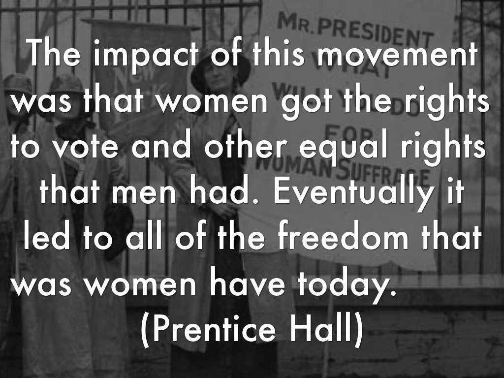 The goals of the women's rights movement was for women to be able to vote, attend college, and basically have the same rights as men. (Prentice hall)