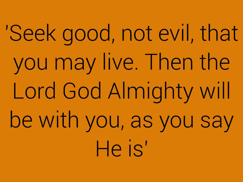 'Seek good, not evil, that you may live. Then the Lord God Almighty will be with you, as you say He is'