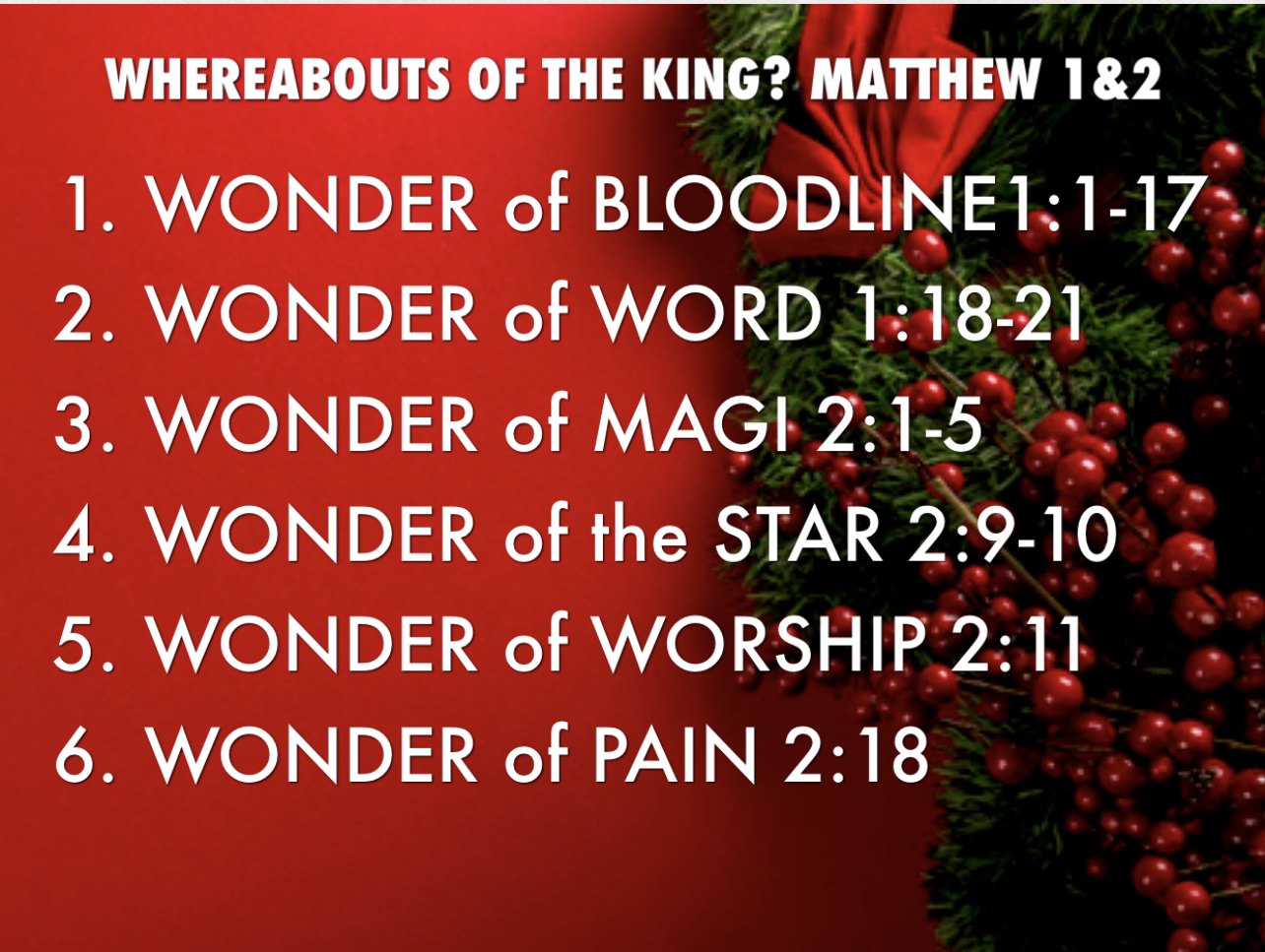 WHEREABOUTS OF THE KING? MATTHEW 1&2