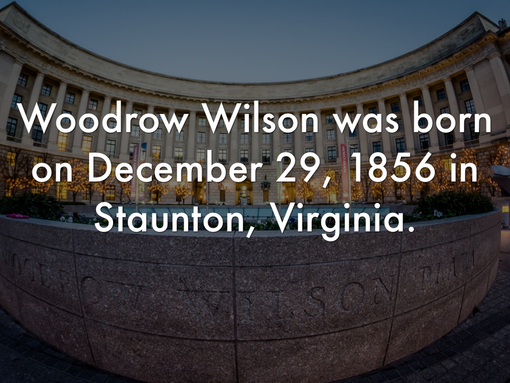 Woodrow Wilson was born on December 29, 1856 in Staunton, Virginia.