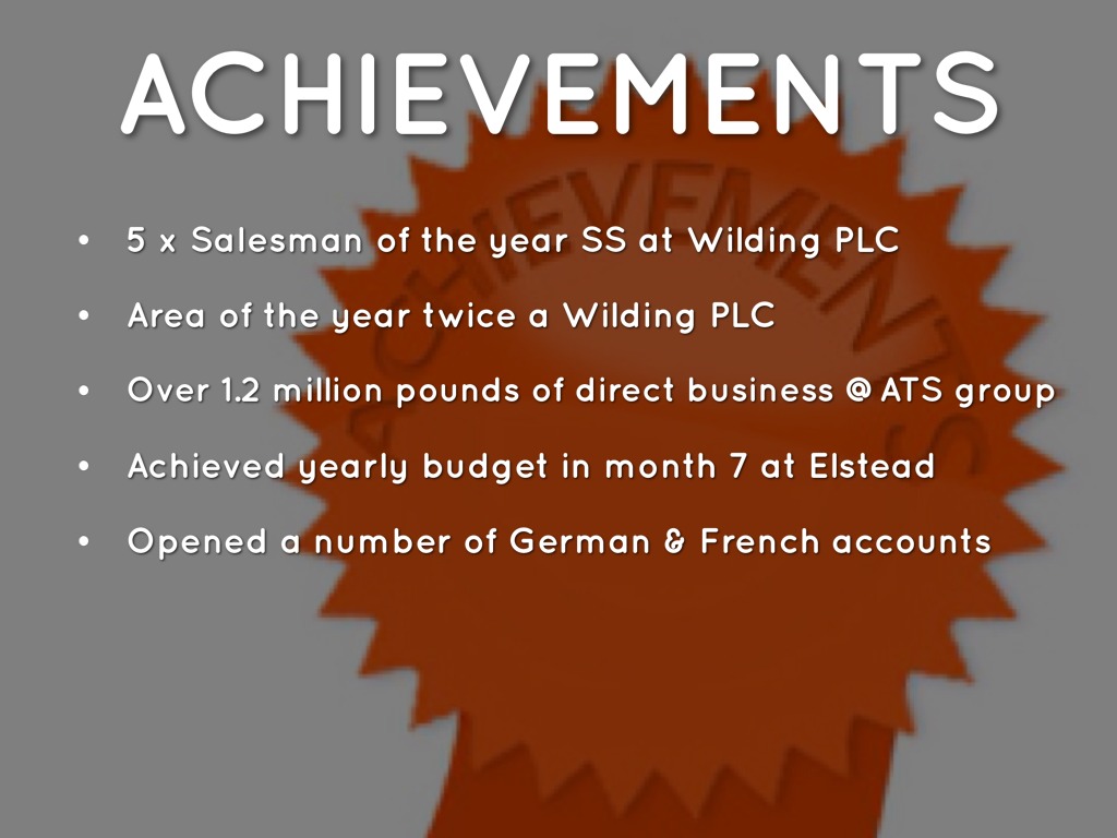 - 5 x Salesman of the year SS at Wilding PLC