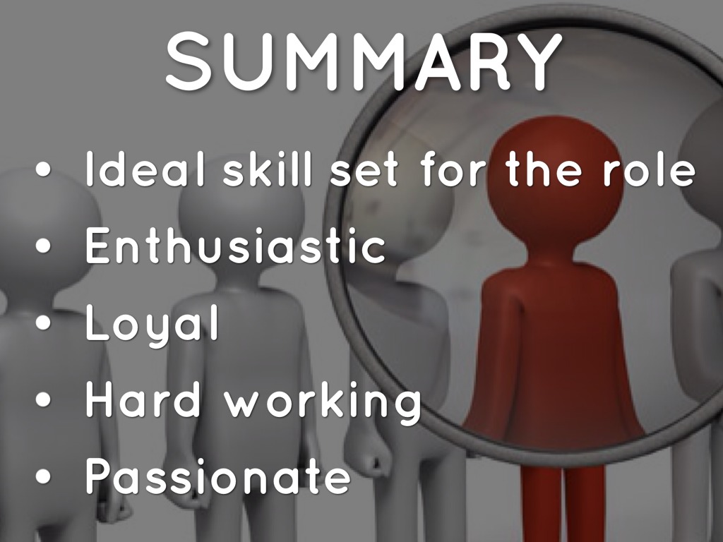 - Ideal skill set for the role
