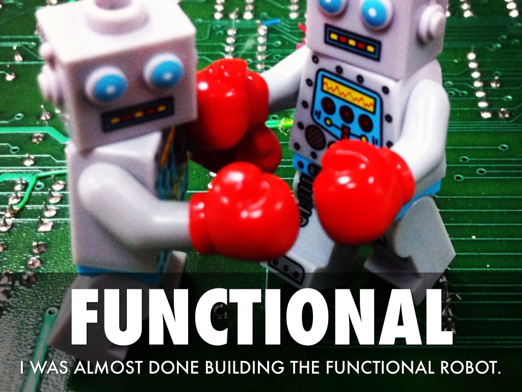 I WAS ALMOST DONE BUILDING THE FUNCTIONAL ROBOT.
