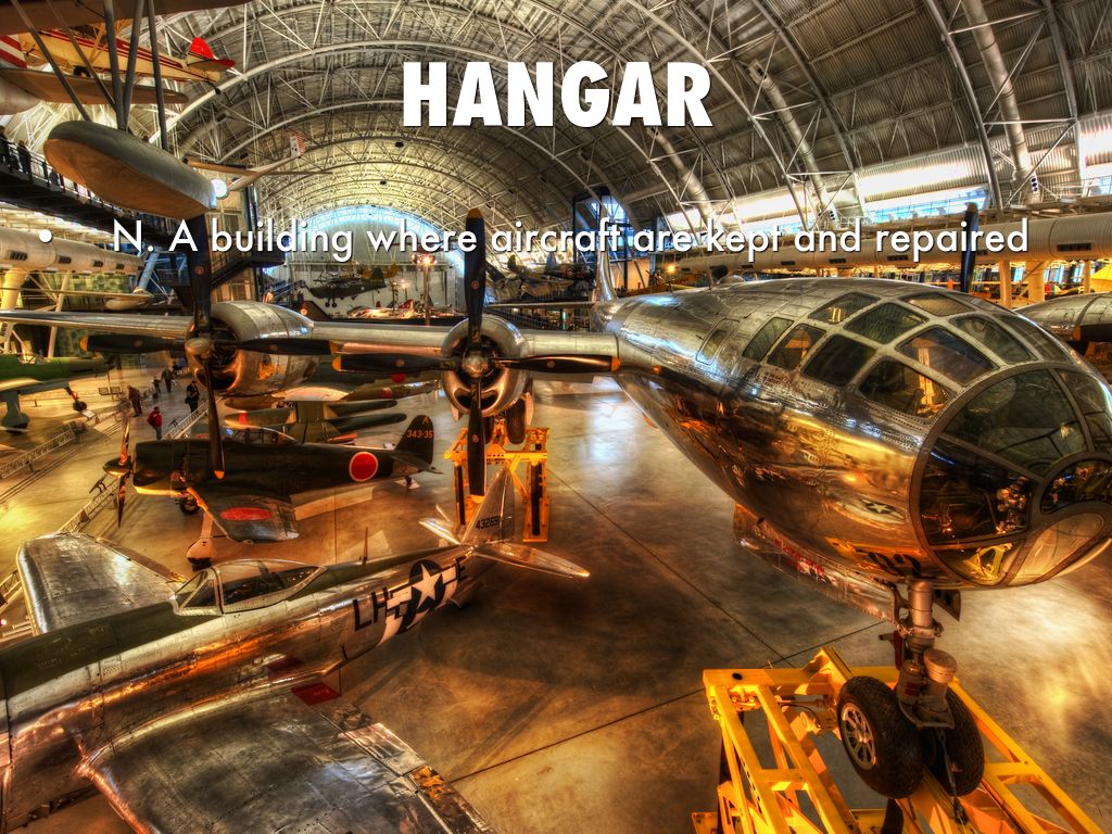 N. A building where aircraft are kept and repaired