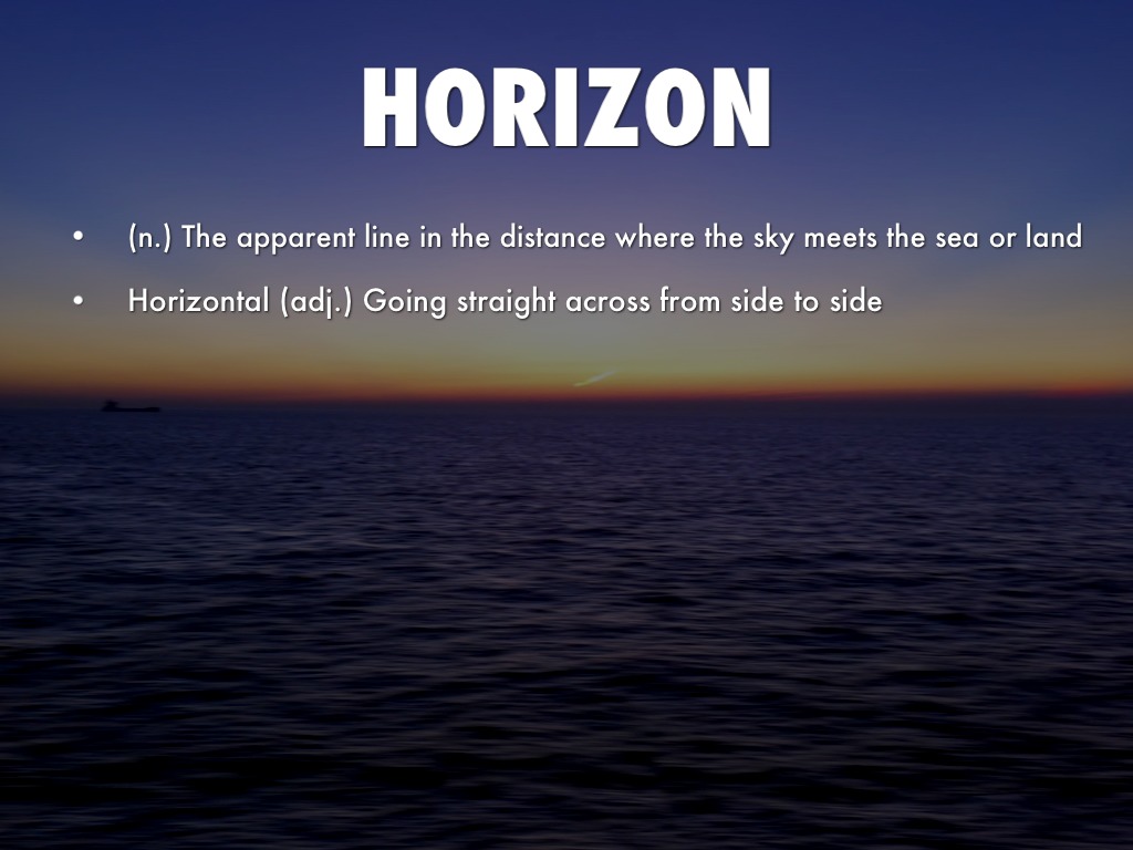 (n.) The apparent line in the distance where the sky meets the sea or land