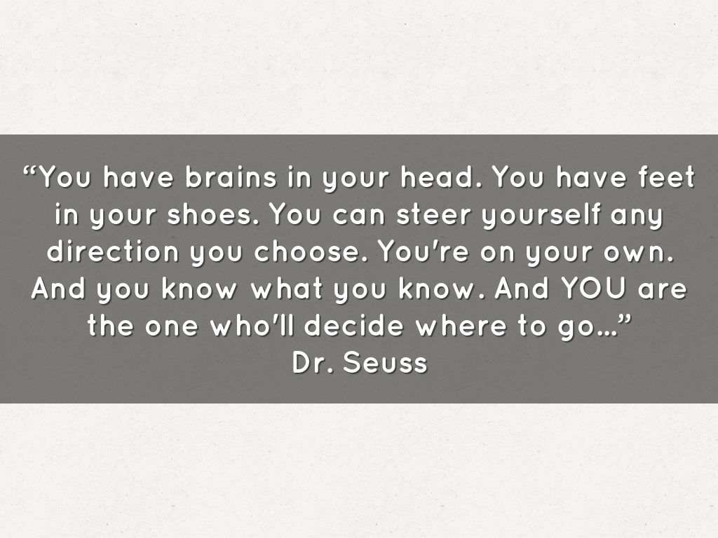 “You have brains in your head. You have feet in your shoes. You can steer yourself any direction you choose. You're on your own. And you know what you know. And YOU are the one who'll decide where to go...”